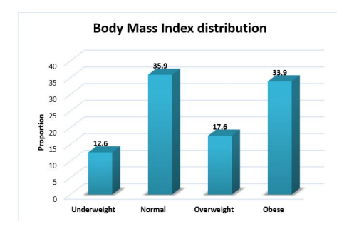 Around 50% of the participants in our study had higher BMI and were overweight and obese. Overweight people have been demonstrated to have higher rates of cardiovascular disease mortality and morbidity, especially when there is central adipose tissue accumulation [17].