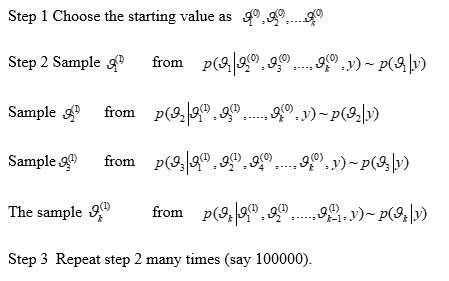 Let a vector of unknown consists of k sub-components as ϑ= ϑ1,…..,ϑk, start with an arbitrary starting value, say (ϑ10, ϑ20,…., ϑk0) and t = 1,2,….,T perform the following steps: