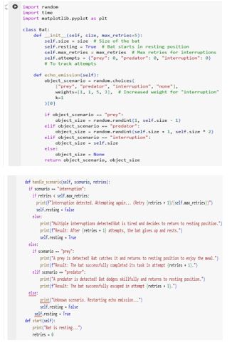 - self.max_retries: This sets the maximum number of times the bat will try again if its echolocation is interrupted.