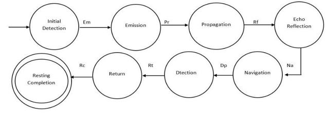 The developed system proved robust against environmental perturbation, well simulating the filtering out of noise by bays, sensing prey, and predator avoidness. Transition graphs and DFA models provided correct representations of dynamic imaging states, propagation, echoreflection and decision-making procedures as depicted in figure 11. These models allowed the simulation of sophisticated environmental interactions, with the system responding to noise and other disturbances while preserving a create performance.