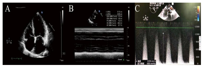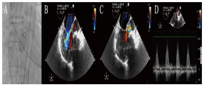 A 74-year-old male patient presented to the emergency department with progressive shortness of breath for several months. He also reported a harsh cough with occasional purulent sputum production. He had a history of AS, hypertension and coronary arterydisease. His AS and coronary artery disease were treated with conservative treatment. Physical examination revealed a 5/6 systolic murmur in aortic area and bilateral lower extremity edema. Transthoracic echocardiography (TTE) and Transesophagealechocardiogram (TEE) demonstrated an extremely severe AS with the aortic valve area (AVA) of 0.5 cm2, peak AV velocity of 12.33 m/s, peak transaortic pressure gradi- ent (PG) mmHg, a significantly decreased left ventricular ejection fraction (LVEF) of 27.7%, mild