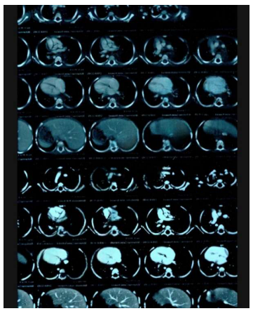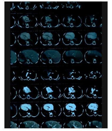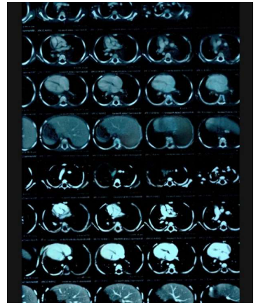 MRI showed: a mass in the posterior mediastinum surrounding the tracheal branch and reaches the diaphragm, surrounding the Azygos vein, superior vena cava, aorta, major vessels and esophagus, measuring (11*5*7) cm. and foci osteolysis in the 9,11,12 thoracic vertebrae.
