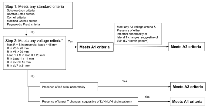 If none of the above were present, other criteria (designated A1 to A4) were considered for an LVH diagnosis: