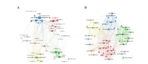 VOSviewer is a software instrument developed by the Leiden University Center for Science and Technology Studies that facilitates the generation and appraisal of bibliometric networks. this application exhibits the ability to construct bibliographic networks, specifically co-authorship, co-occurrence, and citation-based relationships in bibliographic data [17-19]. Additionally, co-occurrence and cluster analyses on authors, research institutions, countries, and discipline aspects were executed utilizing either CiteSpace or VOSviewer, as part of this study