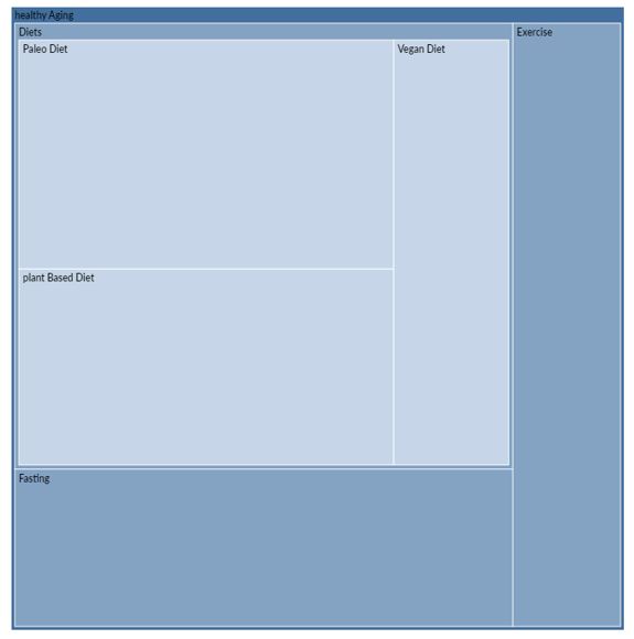 The third main theme which was emerged through the analysis of user generated content is healthy aging. For humans to survive, food is essential. The online community believed it could assist avoid aging-related ailments. Certain diets may improve their health and longevity. A recent research [74] explain that nutritional treatments affect important biochemical processes involved in the aging process, they have a great deal of potential to promote healthy aging. Recent research summarized by Guasch-Ferre and Willett shows a clear link: adherence to the Mediterranean diet lowers risks of heart failure, CHD, stroke, obesity, diabetes, hypertension, and dyslipidemia. Cohort studies further suggest this diet reduces cardiovascular mortality, promotes longevity, and slows cognitive decline [75]. Even though recent studies show that these therapies have encouraging results. An effective nutritional approach for those with obesity, diabetes, metabolic syndrome, and heart failure is intermittent fasting [76], which also improves metabolic and cardiovascular health and aging markers [77].
