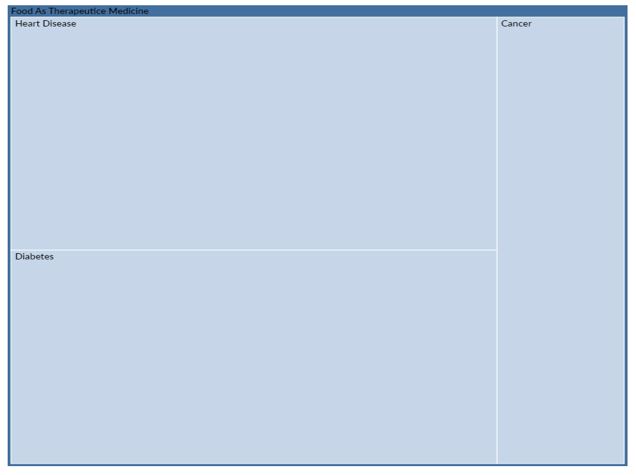 The World Health Organization defines food technology and therapeutic nutrition as "using food as a therapeutic means to fight disease and take care of the patients, who form basic element in treatment and fight disease in addition to medications." According to [33] “Food and medications share a common origin”. Cancer-causing illnesses including hepatitis and the human papillomavirus cause about 30% of malignancies in low- to lower-middle-income nations. Cancer has a devastating effect on people, scientists and medical professionals put forth endless effort to improve cancer prevention and therapy [34]. Foods (with low trans-fat) that are rich or fortified with vitamins, minerals, fiber, probiotics, antioxidants, good-quality fats, secondary metabolites, and growth and development are referred to as functional foods by Health-line because they offer health benefits beyond their typical nutritional value [35]. By preventing fat deposition and obesity, these foods can assist regulate lipid metabolism, which lowers the risk of CVD [36]. Scientists and chemists can use herbal treatments and plant sources as a safe, effective alternative for treating the deadly disease [37]. Cancer highlights how crucial diet is to overall health. Research indicates that phytochemicals included in foods including fruits, vegetables, tea, herbs, and the ketogenic diet help reduce the risk of heart disease, cancer, and inflammation [38]. According to the comments below, the majority of respondents selected culinary foods because they believe that food can act as a therapeutic medicine. The majority of viewers (n = 198) were examined. Food as Preventive medicine was the first major theme that was emerged