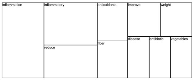 Using NVivo software, the treemap query of the YouTube and Facebook data was conducted up to 10 display words. The results showed that the top 10 words that respondents were discussed about were inflammatory, Inflammation and antioxidants. These were the most important terms used by the online community.