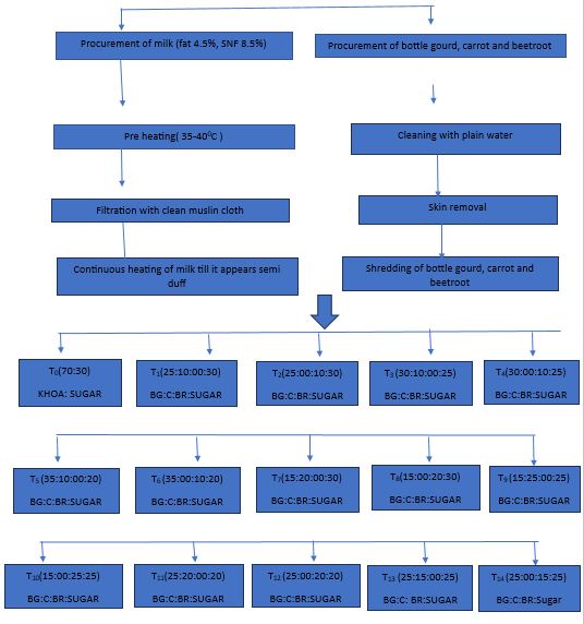 Bottle gourd, carrot and beetroot were selected by visual appearance of fresh vegetables obtained from local market of Prayagraj. Milk, ghee and sugar procured from local market of Prayagraj. The entire experimental studies conducted in the Warner College of Dairy Technology, Department of Food science and Technology, SHUATS, PRAYAGRAJ.