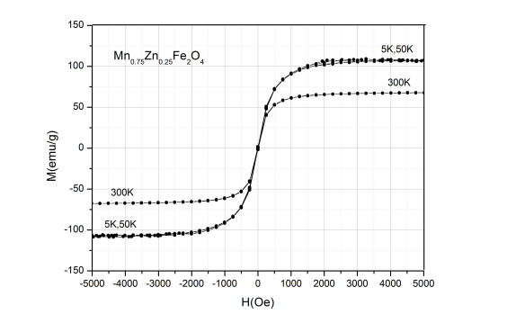 Magnetic behaviour was verified by magnetization measurements on a Measurement System, QD-MPMS-XL-7AC. Figure 4 represents the magnetic cycle of our sample , at three different temperatures 5K, 50K and 300K.