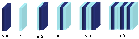 H et L being two different basic materials representing respectively, the high and the low refractive indexes and I the number of generation of the system.