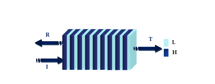 One-dimensional periodic photonic crystals, also known as Bragg mirrors[8], are structures composed of alternating layers of materials H and L with différent refractive indexes nH and nL which are periodically modulated in one direction.