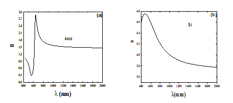 We présented in Figure. 3 the variation of the refractive index n as a function of wavelength of the Si and SiO2 layers deposited.