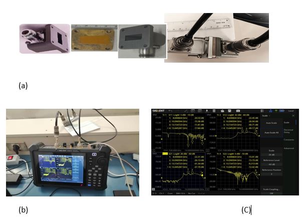 Figure 4 summarize the measurement experimentation and Figure 5 shows S11 and S21 across 8.00 GHz to 14.0 GHz, with 16 resonances marked by red dashed lines. The low |S11| away from resonance indicates good impedance matching.