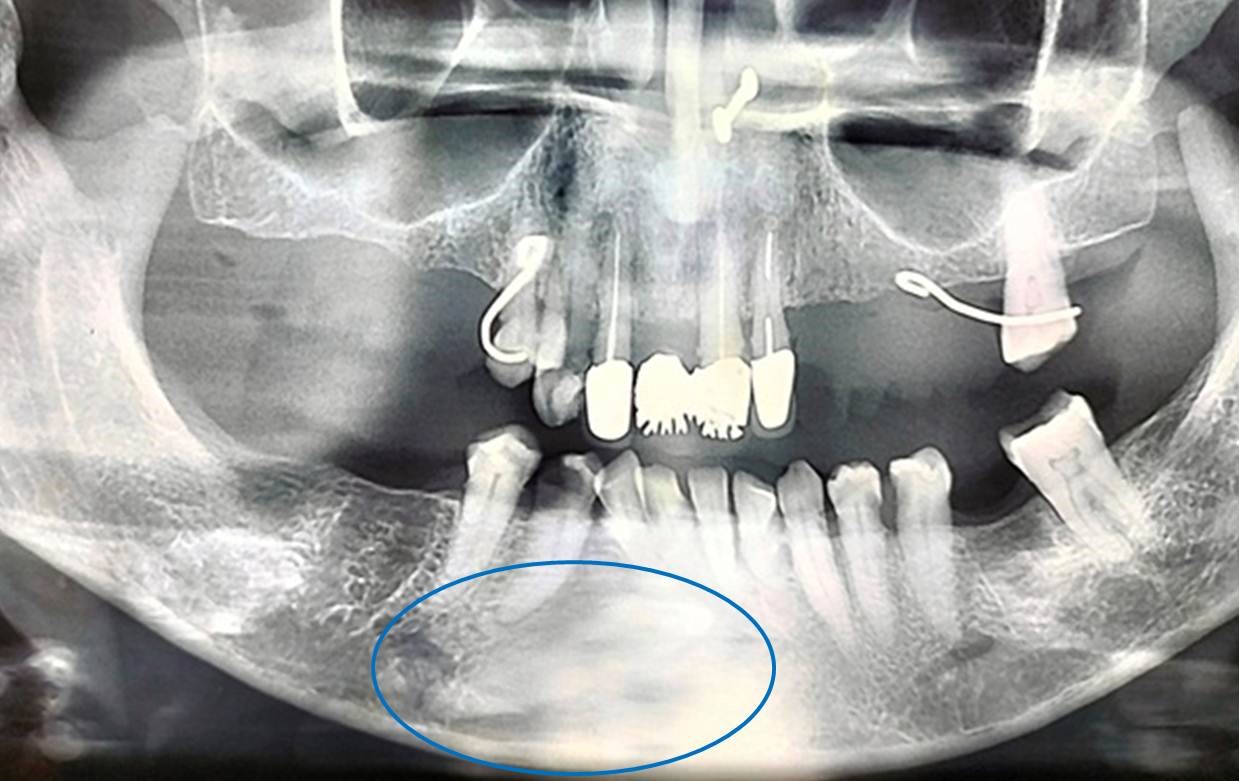 The diagnosis of transmigration involves clinical examination and radiographic assessment [15,16]. The clinical examination includes visual inspection and palpation of the affected area to detect any abnormality in the position,shape, or mobility of the tooth. However, the radiographic assessment is considered the gold standard for the diagnosis of transmigration such as involves taking a panoramic radiograph [17].