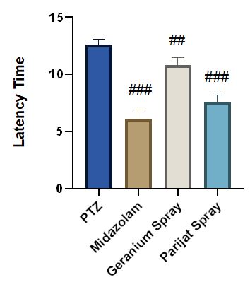 The result of the study shows, the dhoop and spray of Geranium and Parijat significantly decreases in the latency time of seizure episode of PTZ induced seizure (Figure 1 and 2).