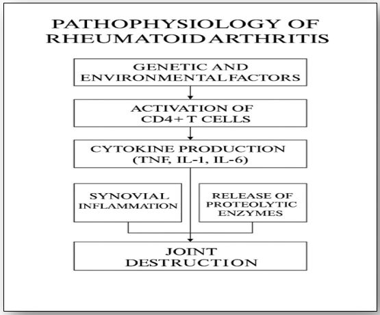 The pathogenesis of RA is significantly influenced by a number of signaling pathways, such as the innate immune system's Toll-like receptor (TLR), apoptotic effector molecules, intracellular kinases, transcriptional factors, and pro-inflammatory cytokine mediators such as interleukins (IL-6, IL-1B), tumor necrosis factor-alpha (TNF-α), and C-reactive proteins [9].