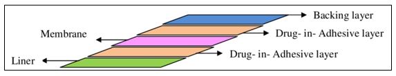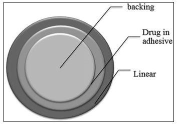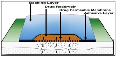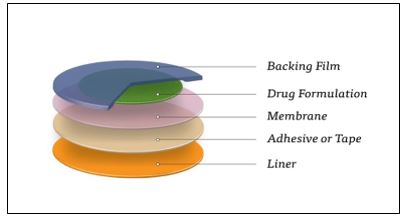 A liquid compartment with a medication solution or suspension that is isolated from the release liner by an adhesive and semi-permeable membrane defines the Reservoir transdermal system design. The product's adhesive ingredient that promotes skin adhesion can be integrated in a concentric pattern around the membrane or as a continuous layer between the membrane and the release liner [44].