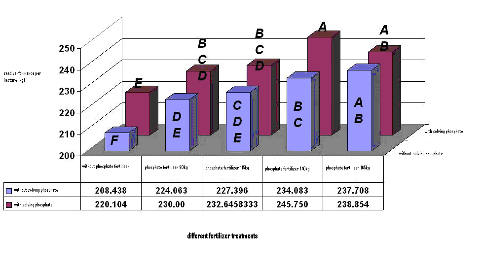 Inoculation of the chick pea seeds with the phosphate solving bacteria and Rhizobium contributed to increase in the performance components and chick pea performance [9]. A study was carried out on 2 zones in Spain in order to find a suitable organic fertilizer for chick pea cultivation. Examination of the gathered samples' DNA indicated that these bacteria belonged to two types of Pseudomonas and Meso Rhizobium. Farm and greenhouse tests were applied on the chick pea growth for inoculation of each of such bacteria and / or a combination of both bacteria. Under greenhouse condition, inoculation with Meso Rhizobium bacterium, the maximum dry substance of the aerial organ, as well as inoculation with the Pseudomonas bacterium, increased the performance of the dry substance of the aerial organ up to 14% in comparison with the Contour. Under farm condition, inoculation with Meso Rhizobium bacterium and/or a combination of both bacteria, we gained maximum weight and number of wet seed. In inoculation of the seeds with two types of bacteria (Pseudomonas and Meso Rhizobiu) of these bacteria, application of incremental effects on each other increased the seeds performance by 52% [3]. A test was carried out at the Nancy Biological Center of France to study the application of the phosphor releasing bacteria on maize. In this study, the maize plant was cultivated in a pure growth media with sandy soil with the amounts of 0, 5, 15 and 25 mg/kg soluble phosphor and insoluble mineral phosphate to the same amount, and then the phosphor releasing bacterium was added to the growth media. Maximum plant growth was realized in presence of 5 and 15 mg per km of soluble phosphor, which indicates low phosphor released by bacteria [10]. In a test, the effects of the phosphate solving microorganisms on wheat was examined in Mali, and it was found that by combination of phosphor solving bacteria and fungi Aspergilus and Penicillium with the mineral phosphate, maximum phosphor density and plant performance was gained [11]. Over an examination, 111 kinds of bacteria were extracted from Rapeseed, out of this amount of bacteria, only 9 of them were able to release phosphor. These bacteria contributed to increase in the height of bush, number and weight of the sheath of Rapeseed [12]. In an examination carried out at the agricultural research centre of New Delhi, the effect of combined inoculation of Azosperillium and phosphate solving bacteria (Bacillus and Pseudomonas) with the nitrogen chemical fertilizer and phosphate soil on the performance and contents of the nutrition matterial of sorghum was studied. The results indicated, the performance of seed, dry substance, nitrogen and phosphor contents with combination of organisms had increase in comparison to each organisms [13]. In an examination, the effect of phosphate and the phosphate solving bacterium on the production of Cairo clover was studied. This examination was carried out during 1997-1999 including 6 levels of phosphor and inoculation of seed clover with Pseudomonas. The combination of the biennial examinations indicated the amount of green provender and the performance of the dry substance increased by application of 60g of phosphor per hectare and maximum raw protein by application of 100kg phosphor per hectare was gained. Inoculation of the seeds of clover with bacterium every 2 years caused a meaningful increase in the performance. In addition, the average performance of the green provender, dry substance and protein had respectively 7.19%, 9.2%, 11.7% increase in comparison to the seeds inoculation with bacterium. The study on the interaction of phosphate levels and phosphate solving bacterium indicated that application of 60g of phosphor per hectare with phosphate solving bacterium had maximum performance of the dry substance and the green provender.
